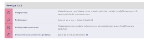 Warto też wskazać, że dokumenty podpisane na platformie Autenti zawierają następujące pola nazywane “Rewizjami”: