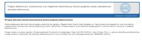 - Pieczęć Autenti potwierdzająca złożenie zwykłego podpisu elektronicznego